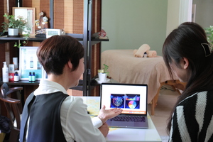 声の波形を見ながら、波動調整器で波動分析して今の心と身体のバランスを可視化。最適の施術をお届けするため心と身体を分析